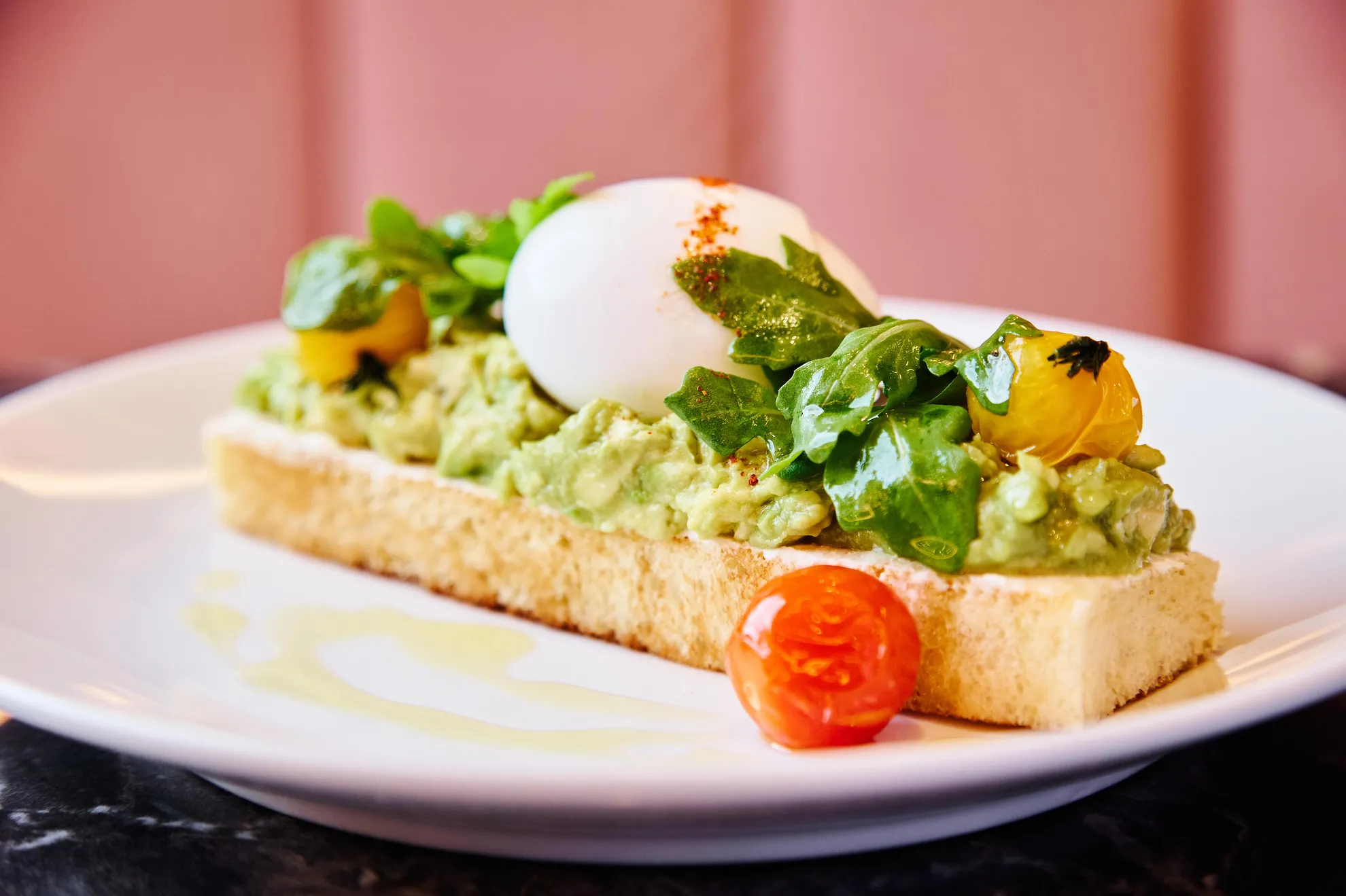 Brioche, tomatoes, ricotta, avocado, poached egg, chili crisp